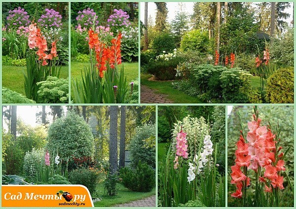 С какими растениями сочетаются гладиолусы на клумбе?