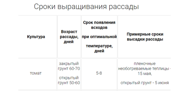 То есть, если, как указано в таблице, примерный срок высадки рассады 15 мая, то от этой даты нужно отнять 65-73 дня (срок появления всходов+возраст рассады). При таком раскладе получается, что семена надо высаживать где-то, примерно, 4-12-го марта.