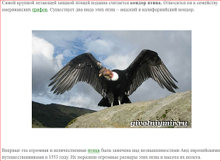 Скорее всего, эта птица называется — Кондор (6 букв). Это самая крупная летающая птица Америки, относящаяся к семейству грифов. Например, размеры калифорнийского кондора могут составлять от 280 до 320 сантиметров, а вес до 15 килограммов.