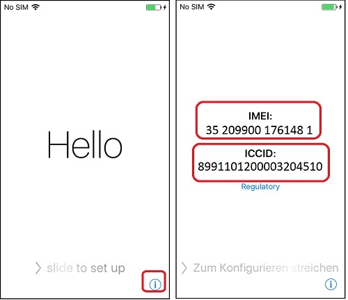 Как узнать имей? Конечно, легче всего узнать его, прочитав с задней крышки или же с слота для симки. Однако некоторые люди ремонтируют устройство, меняют детали. Поэтому если айфон сброшен до заводских настроек, при высвечивании приветствия нажимайте на голубую i и смотрите: