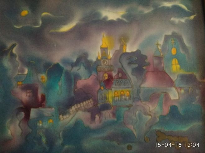 По стилю картину можно отнести и к импрессионизму, и к абстракционизму. То есть, в картине есть характеристики и того и другого. А вот по написанию, т.е. по технике исполнения, — это батик — специальная технология художественного исполнения картины с воском на ткани, в основном — на шелке. Название этой картины — "Сказка лунной ночи",(фантазия художника Заблоцкой).