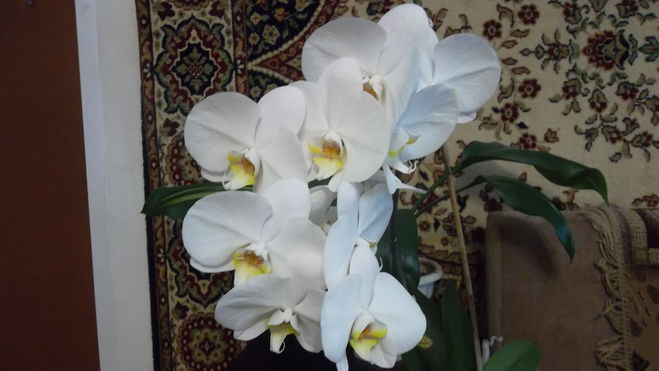 Мои орхидеи всегда в превосходном состоянии и цветут 2 раза в год ( фалеонопсисы). Я всем рекомендую очень полезную для них процедуру, я называю ее "банной": в ванной включаю кран с горячей водой, горшки с цветами ставлю над ванной ( приспособление можно придумать любое, или просто положить поперек ванны любую полочку), закрываю дверь и оставляю их на 15-20 минут дышать теплым паром. Они это очень любят.