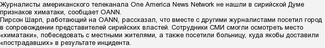 Подробности новости можно почитать тут. Там говорится об американском телеканале OANN (One America News Network), журналисты которого побывали в Сирийской Думе и не нашли там признаком химической атаки. Зато у них есть показания дежурного врача, который видел незнакомых людей, ворвавшихся в больницу и поливавших случайных прохожих водой. Россиий канал Россия24 опубликовал интервью с мальчиком, который оказался в "эпицентре" химатаки. Его просто схватили на улице, затащили в больницу, полили водой и попросили немного попозировать. Потом, правда, дали ему печенье и варенье, то есть рис с финиками, но не суть. В общем скандал начинает набирать обороты и как бы не дошло до импичмента нынешнему президенту США, который уже начал путаться в своих собственных словах.