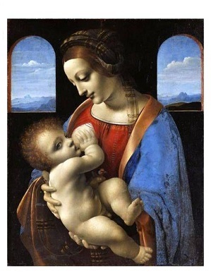 Картина Леонардо да Винчи называется «Мадонна Литта», потому что до приобретения её Эрмитажем она хранилось в коллекции миланского герцога Литта. Художник написал её в начале 1500 г. как «Мадонну с младенцем» по заказу французского короля Людовика XII и Папы Льва X.