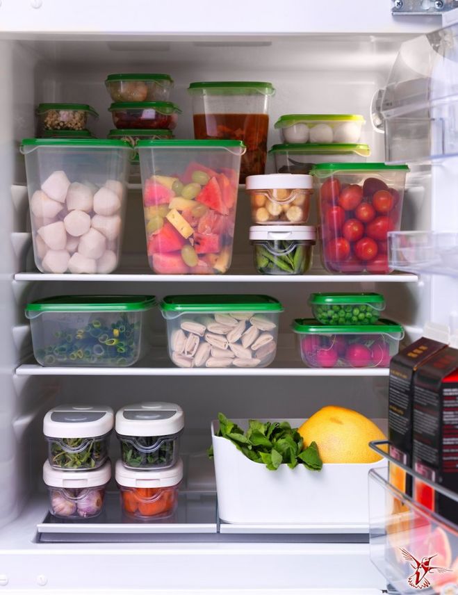 В пакетах я мало что храню, в основном укладываю пищу в пластиковые контейнеры(которые подходят для микроволновой печки) или в эмалированные кастрюльки, в миски, в пиалы, стараюсь, чтобы пища была покрыта крышками.