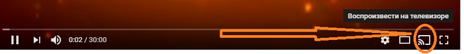 Для этого нужно включить нужное видео, нажать на значок, который на фото, на ТВ появится вопрос подключить или нет. Потом телефон можно выключить, но видео все равно продолжит работать. Дальнейшие действия перемотки или выключения уже на ТВ можно производить.