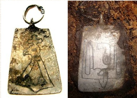 В 2008 году во Пскове при раскопках захоронения 950 — 960 годов была найдена трапециевидная подвеска (знак княжеского наместника). На одной стороне изображена тамга в виде двузубца с ключом, на другой — стилизованный сокол в геральдической позе с равносторонним крестом над головой.
