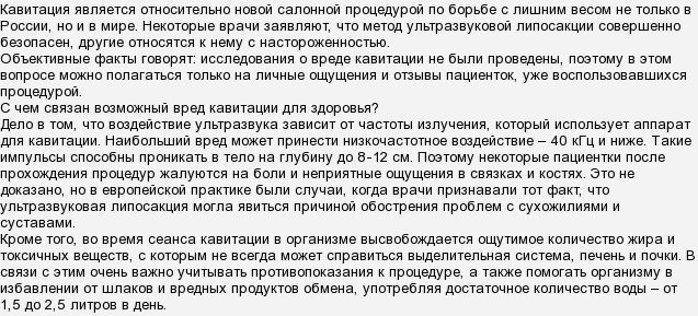Насчет использования кавитации в медицинских целях. Вот что пишут на сайте novoclinic.ru