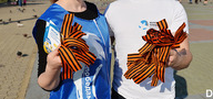 Георгиевские ленточки раздают волонтёры-добровольцы, которые планируют раздать жителям в этом году не менее 100 000 ленточек, которые являются символом Победы.