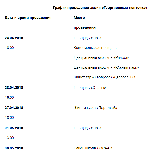 В Хабаровске и в Хабаровском крае 24 апреля 2018 года стартовала акция "Георгиевские ленточки".
