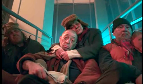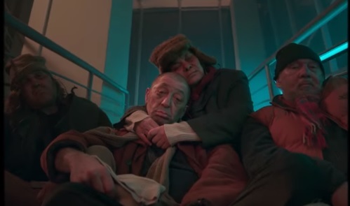Кто помнит — он там с уличным народом. Здесь все еще круче — он уже настоящий закоренелый бомж, и его окружение — соответствующее.