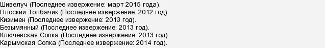 Есть еще вулканы Шивелуч, Кизимен, Карымская Сопка и другие.