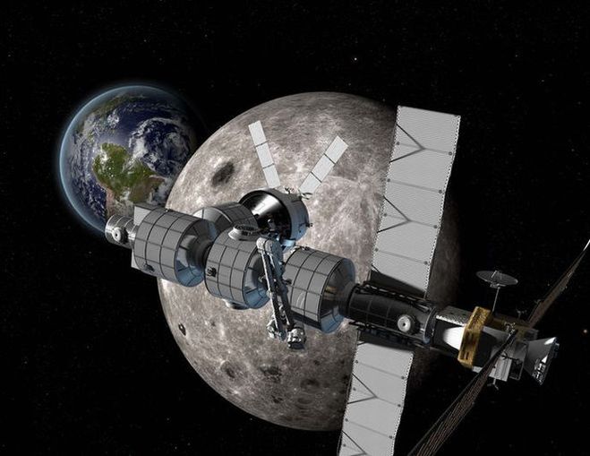 …Переговоры о создании международной окололунной станции начались в 2013 году. Согласно последней информации, в 2022 году к Луне планируется отправить американский двигательно-энергетический модуль, в 2023 году к нему присоединится американский жилой модуль. Следующим на станции должен появиться российский шлюзовой модуль. В качестве ракеты-носителя, которая выведет его на орбиту и отправит к Луне, рассматриваются российская ракета тяжелого класса «Ангара А5», а также американская сверхтяжелая ракета SLS. Во втором случае модуль, вероятнее всего, отправится к лунной орбитальной платформе Gateway в связке с американским пилотируемым кораблем Orion.
