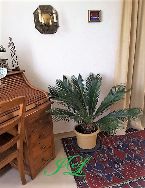 Цикас отогнутый, или Цикас поникающий = Cycas revoluta из семейства Саговниковые относится к медленнорастущим растениям. В год цикас выпускает в среднем два-три листа.