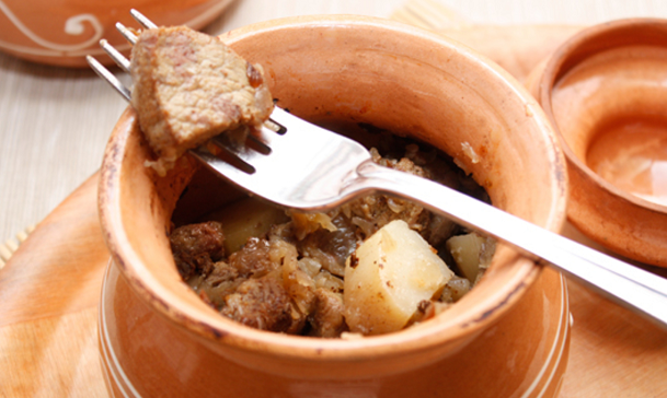 Расскажу свой рецепт. Мясо обжариваю, морковь и лук тоже обжариваю. Кубиками режу картошку, можно вообще слоями не класть, а перемешать все. Кладу все в горшочек, сверху могу немного сметаны положить или сыра натереть. И еще потом беру муку и воду, чуть соли и замешиваю тесто. Потом раскатываю тесто и этим тестом сверху делаю типа крышечки, чтоб сверху обволакивало тесто горшочек. И получается шикарно и необычно) Мои все любят и гостям нравится.