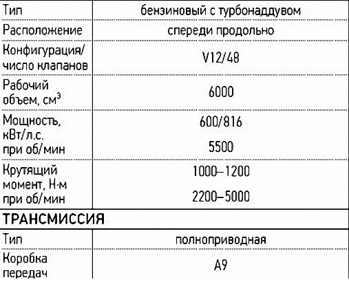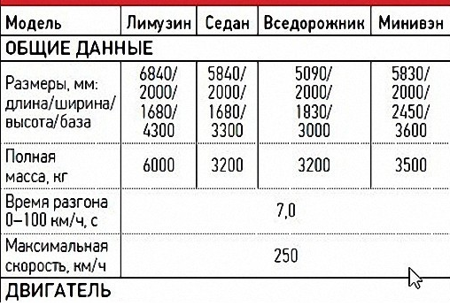 Технические характеристики автомобилей "Кортеж":
