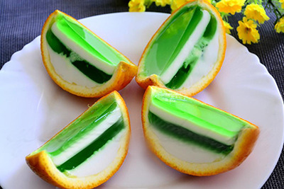Желе можно сделать как в форме кекса , так и в бокалах , или в стаканах или в виде кусочков тортика или подать его в кожуре апельсина.