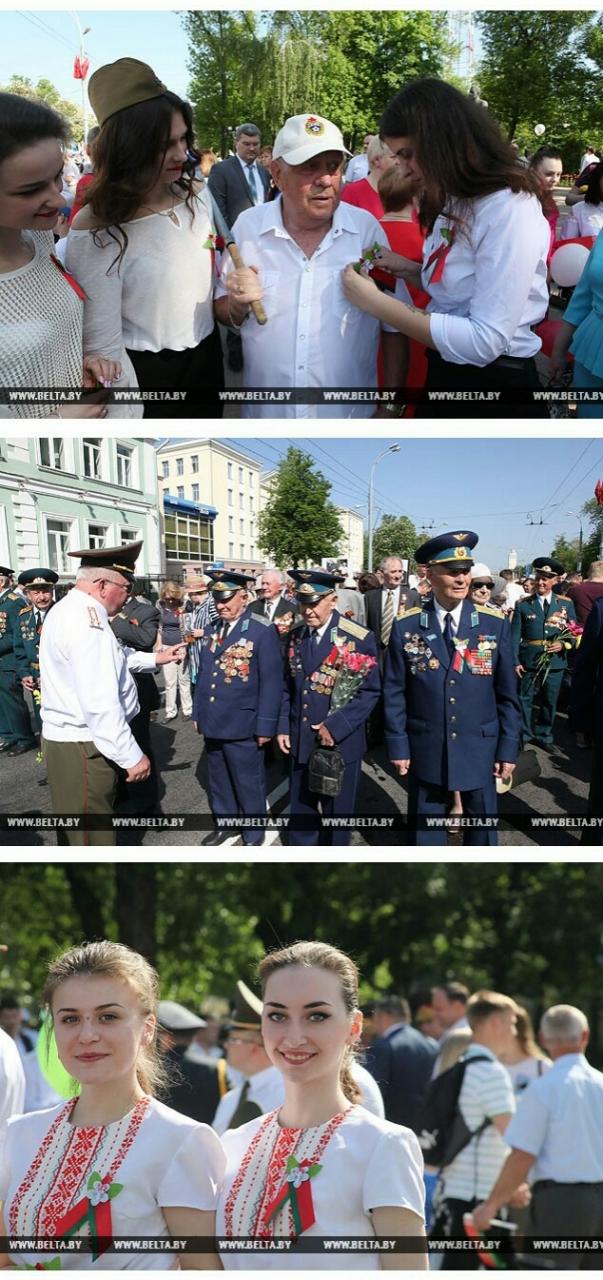 С этой поры на День Победы в Беларуси все участвующие в праздновании официально и "добровольно" — неофициально должны носить на груди этот бант, — и чиновники, и милиция, и ветераны, и дикторы БТВ, и продавщицы в магазинах, и школьники, и простые беларусы, пришедшие на праздник.
