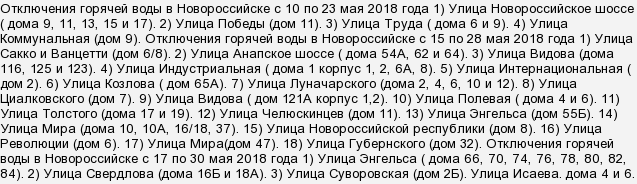 График отключения горячей воды в Новороссийске в 2018 году?