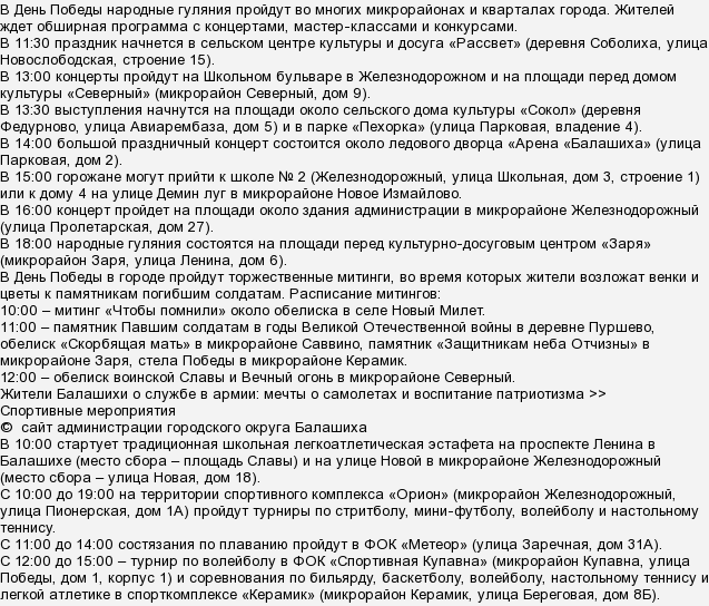 День Победы 2018 в Балашихе: какая программа мероприятий?