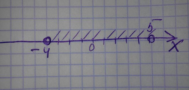 3) решением системы, а значит и двойного неравенства будет:(-4;5)