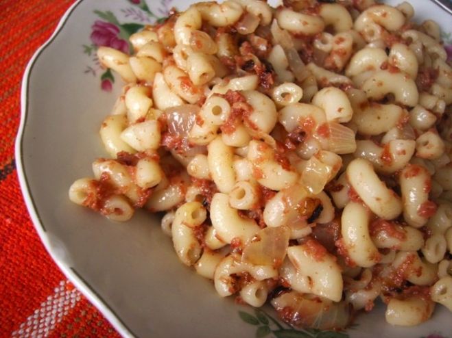 Дома макароны варят обычно Макфа, они из твердых сортов пшеницы , не развариваются и вкусные. Макароны делаем с фаршем в томатном соусе и много специй. Иногда если нужно быстро, посыпаем макароны натертым сыром, на сковороде под крышкой.