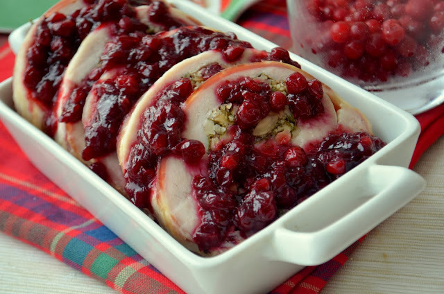 Будет вкусно и очень красиво мясной рулет из отбивной свинины с брусничным вареньем.