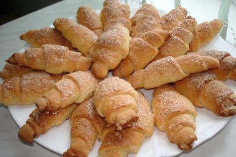 Еще из десертов наиболее вкусными получаются рогалики с вареньем. Можно приготовить по этому рецепту: 3 стакана муки, 5 столовых ложек молока, 80 граммов сахара, 200 — маргарина, 5 — ванилина, обязательная щепотка соды и 1 чайная ложка уксуса. Формирует треугольниками и раскладываем аккуратно варенье с последовательным скручиванием: