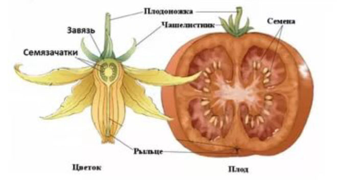 Любой плод развиваются из цветка. Цветок образуется на побеге, который развивается ответвлением от стебля. Цветок крепится на цветоножке.