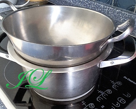В этом и заключается "секрет": вода в нижней кастрюле всё время остаётся горячей, но не кипящей, а смесь в полусфере постоянно помешивается.