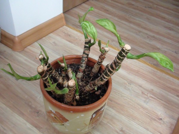 Часть видов Аглаонемы = Aglaonema охотно наращивает боковые побеги и прикорневые отпрыски, что делает кустик более объемным и красивым, часть же, наоборот, растет "в один стебель", неохотно деткуется и ветвится. К последним как раз и применяются меры для создания более пышной формы.