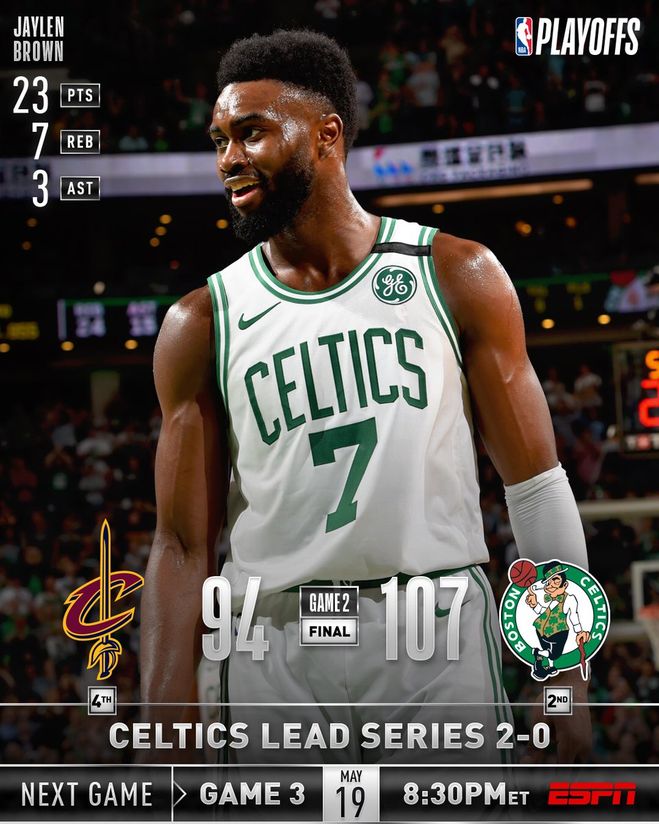 За океаном продолжается плей-офф НБА, дело дошло до финалов конференций, где на Востоке отношения выясняют "Бостон" и "Кливленд", минувшей ночью там была сыграна вторая встреча серии до четырех побед. Селтикс первым ударил кавалеров и никогда не оглядывался назад, переходя к разгрому игры 1. Леброн Джеймс буквально выстрелил в челюсть в 2-й игре, но остался на высоте. Так и Селтикс. Джейлен Браун набрал 23 очка, а Бостон выдержал 42-очную ночь Джеймсом, чтобы обыграть Кливленд 107-94 во вторник и занять 2-0 в финале Восточной конференции. Терри Розье добавил 18 очков, в то время как Аль Хорфорд закончил с 15 очками и 10 подборами. Бостон улучшился до 9-0 в этом сезоне в TD Garden. Селтикс никогда не взорвал лидерство 2-0 в плей-офф. Джеймс добавил 12 передач и 10 подборов. Он забил 21 из 27 очков Кливленда в первом квартале, завязывая свою карьеру в плей-офф за очки в течение определенного периода. Его 42 очка отмечены его пятой 40-очковой игрой этого постсезона. У Джеймса всего 15 очков, и он пропустил все пять своих трехточечных попыток в проигрыше 1 игры Cavs. Но он, похоже, не играл с такой же силой после того, как напряг шею в первом столкновении, а кавалеры увязли во втором тайме, а Селтикс обогнал их 59-39. Кевин Лав закончил с 22 очками и 15 подборами для Кливленда. Как и ожидалось, Тристан Томпсон начал вместо Кайла Корвера в надежде, что его присутствие может активизировать то, что было вялым преступлением Cavs в игре 1. Томпсон получил первую корзину Кливленда в ночь и помог ограничить эффективность Хорфорда на ранней стадии. Корвер добавил 11 очков со скамейки для Кливленда. Но стартеры Томпсон, Дж. Р. Смит и Джордж Хилл объединились всего лишь на 11 очков на 5-й-17-й стрельбе. Темперы вспыхнули с 3:49, чтобы сыграть с Бостоном, ведущим 97-89. Маркус Смарт попал в лицо Смита после того, как Смит толкнул Хорфорда в спину, чтобы предотвратить простоя. Смит оттолкнул Smart, и пара должна была быть разделена. Смит был оценен грубым фолом, и оба получили технические фолы. Сбалансированная атака Бостона была эффективной снова, и шесть игроков достигли двойных фигур. Кливленд имел 15 оборотов, что привело к 13 бостонским очкам. Селтикс перевернул его всего шесть раз. Бостон возглавил 84-77 после трех четвертей и принял командование в конце четвертого, а Cavs получил небольшое нарушение, кроме Джеймса. Начальники Кливленда были вытащены с 1:48 слева и Cavs вниз 14. Джеймс был атакован от открытия. Он повернул мяч над первым владением Cavs. Но это был один из его единственных ошибок в первом квартале. Джеймс был также поразительно эффективен, используя свой трюк, чтобы создать пространство, в то время как он сбил ассортимент прыжковых выстрелов. Он закончил начальный квартал 8 из 13 с поля и 4 из 7 из 3-х точечной линии. Его импульс коротко опустился на отметке 3:50 второй четверти, когда Джейсон Татум был посвистел за фол после того, как поймал челюсть Джеймса своим плечом, когда он попытался украсть. Джеймс остался в игре и подключился к одному из своих последующих штрафных бросков, но затем вышел в раздевалку с Кливлендом, ведущим 47-36. Кавальерс сказал, что у Джеймса растяжение шеи. Он вернулся после пропуска менее двух минут игрового времени. Бостон разбежался перед половиной, получив шесть очков от Морриса в последнюю минуту, чтобы урезать ход Кливленда до 55-48 в перерыве. Кавальерс: Изменились 50-42 в краске пос