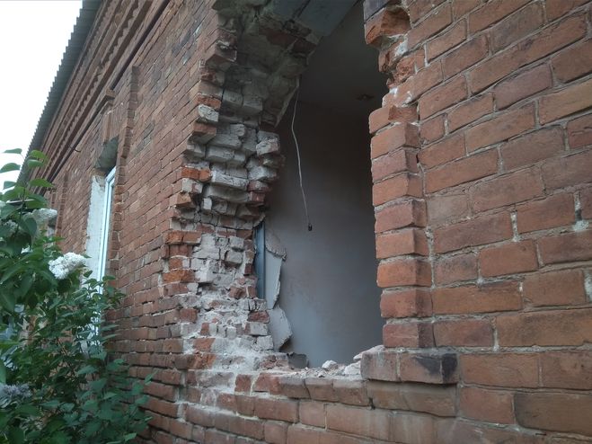 В частном секторе и в центре города есть заброшенные дома, этот, например, напротив моего стоит. Никто не живёт после "Кровавой Троицы", попадания снаряда: