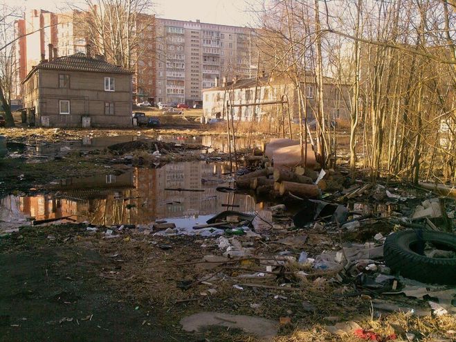 Самые грязные места там, где есть общежитие, но нет урн и контейнеров для мусора. Вроде и люди- свиньи, да только реально нет альтернативы. Раз в год там убирают. Жесть, в общем.