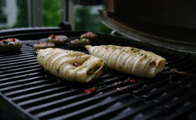 Да кальмары можно жарить на мангале. Например в Германии кальмары жарят на мангале. Например один из рецептов. Кальмар замариновать в оливковом масле ( но лучше в растительном так как оливковое имеет горечь во вкусе и это может забивать вкус кальмара ) + специи такие как розмарин+крупная морская соль. Мариновать от 1 до 2 часов. Жарить на очень слабо нагретом мангале 10 минут. Если очень нагрет тогда от 2 до 5 минут . Так ка кони очень быстро готовятся.