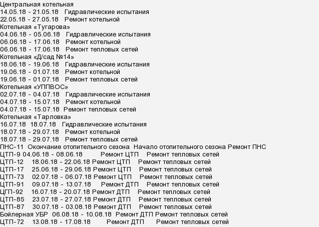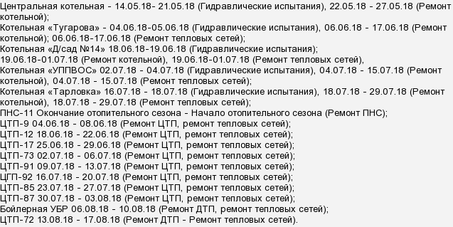 График останова на ремонт котельных Елабуги (2018) можно посмотреть ниже, а опубликован он был здесь.