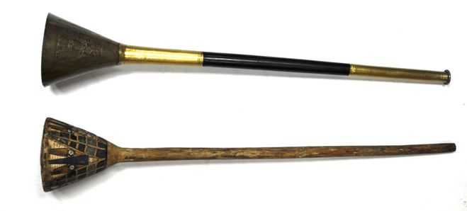 Регулирование громкости звука и тембра базуки происходит за счет увеличения и сокращения длины выдвижной трубы изготовленной из листовой меди или латуни.