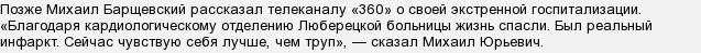 Так же сам Барщевский подтвердил, что пока о дальнейших прогнозах о состоянии здоровья на ближайшее время ещё говорить рано. Хочется пожелать Михаилу Барщевскому скорейшего выздоровления.