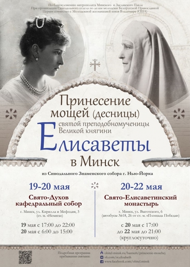 Именно к этой дате и будет приурочено знаменательное событие — в Минск прибудут мощи Елизаветы Федоровны и преподобомученицы Варвары.