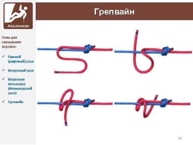 Рифовый узел не затягивается и, наоборот, служит для быстрой развязки.