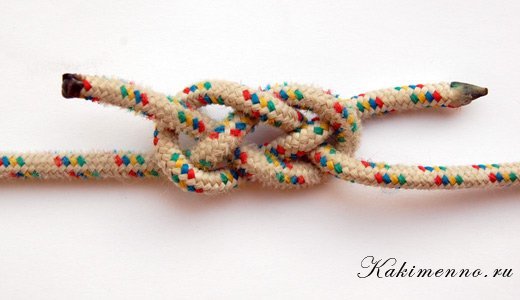 А синтетику лучше будет плоским узлом связать. Он маленько посложнее рифового, но тоже достаточно легко вяжется.
