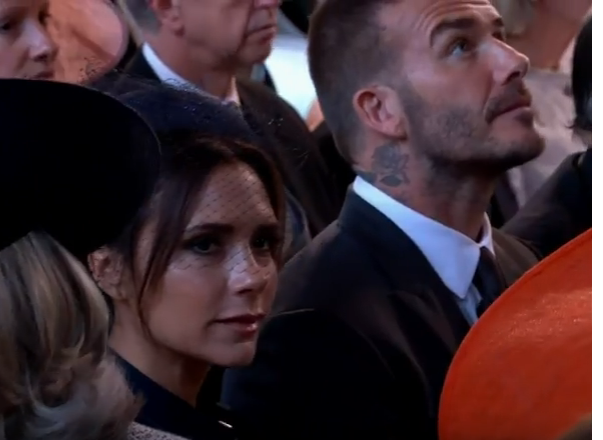Виктория Бэкхем со своим спутником жизни Дэвидом также была на свадьбе принца Гарри и Меган Маркл, но почему-то была одета во всё чёрное и очень грустила.