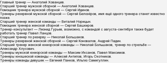 И более подробно о тренерском составе на предстоящий сезон по биатлону: