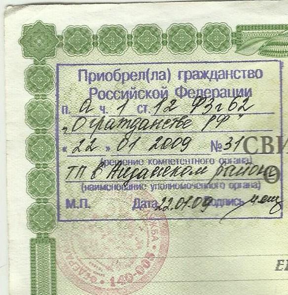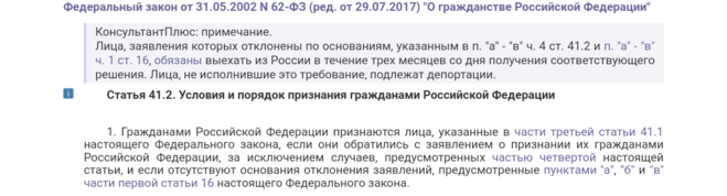 Насчёт пункта "Г"… О том я и пишу. Что даже 62-ФЗ РФ говорит о том, что все первично выданные паспорта РФ, получены незаконно. Потому что тогда, возможно только единицы людей написали заявления о признании их гражданами РФ. Но опять же, тогда у РФ, ещё не существовало закона о гражданстве РФ.