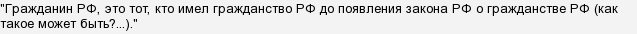 • Гражданин РФ, это тот, кто имел гражданство РФ до появления закона РФ о гражданстве РФ (как такое может быть?…).