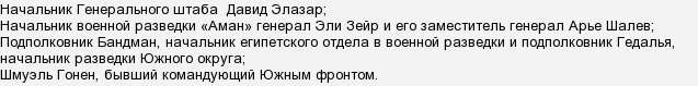 Победа в войне большой ценой вызвало в Израиле правительственный кризис. Специальная комиссия, изучив ход войны назначила 6 человек ответственых за неудачи. В их числе: