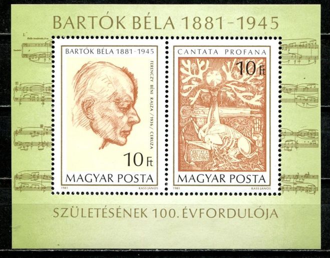 В вопросе идет речь о венгерской марке. У меня лично этот факт увязывается с венгерским композитором Белой Бартоком (1881-1945) и его "Светской кантатой" (Cantata Profana).