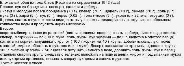 Еще мы забыли про суп из лебеды, которая в блокаду спасла немало людей, про блюда из столярного клея и про многое другое.