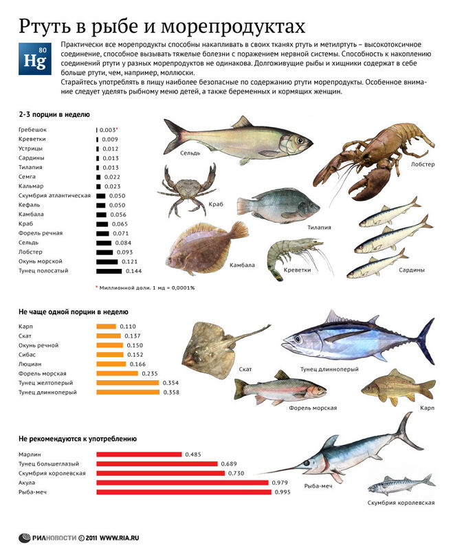 Очень многие морские рыбы также накапливают ртуть.