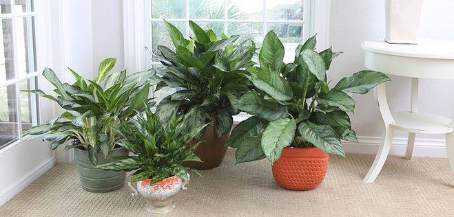 Декоративно-лиственные: различные виды аглаонем (лучше не красные и розовые, а зеленые, зелено-серебристые), маранта беложильчатая, плющи с необычной окраской листьев, зебрина висячая(иначе традесканция зебрина), папоротники с ажурными и нежными вайями(адиантум=венерин волос, нефролепис), пальмы(хамедорея), пеперомия (сморщенная, серебристая).